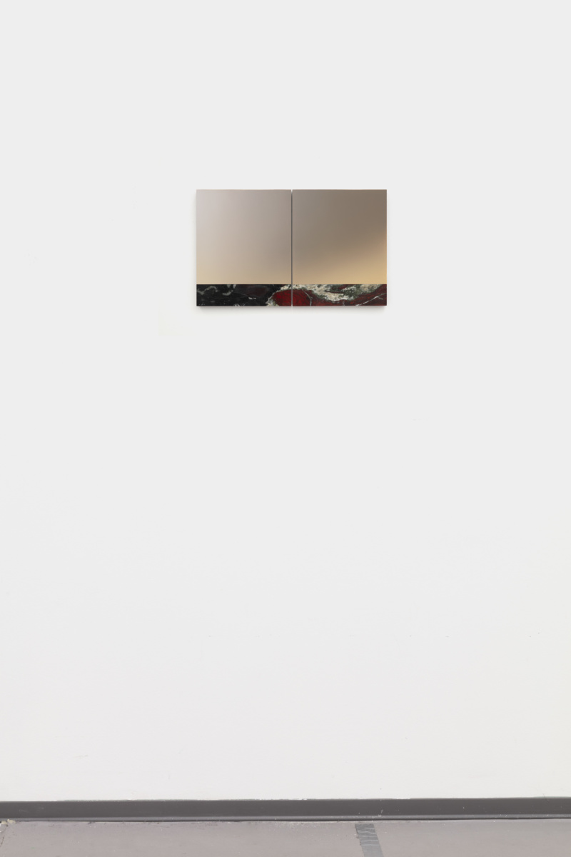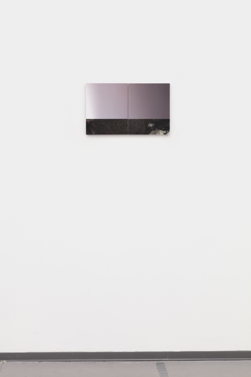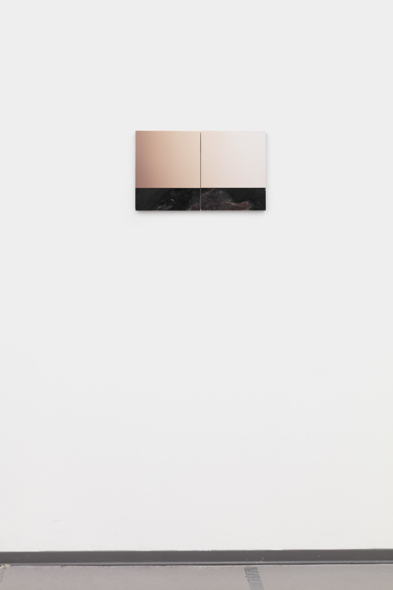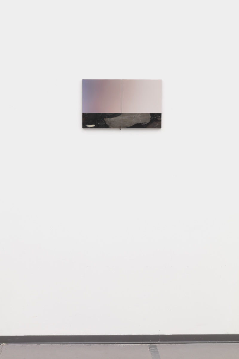 In the artist’s new silkscreened marble, the reality of the material itself and that of its representation are conflated. Rasterised photographic images of the surface of the marble are consecutively silkscreened on top of the surface they depict using the CMYK principle. In this tautological operation, the image dissolves into the material to blur the line between matter and representation—the two central elements of our visual world. The geological time crystallised in metamorphic rock is also present in a series of painted marble diptychs that evoke abstract landscapes. Painted directly onto the geology of the divided marble slabs, these luminous landscapes, which are also divided in two parts are confronted to the actual surface of the marble, and in turn, they take on a quasi photographic quality. From hyperrealistic abstraction to formless representation, Pieter Vermeersch devises a constant back and forth that reflects our need to simultaneously divide and connect time and space, abstraction and representation.